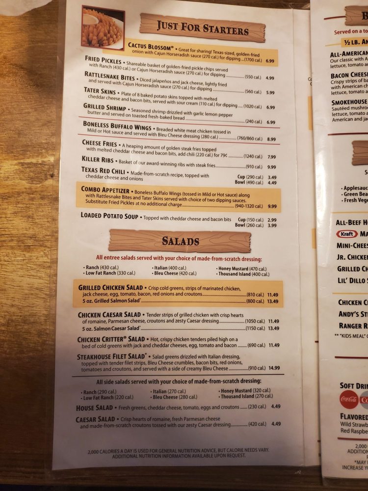 - Start your meal with enticing appetizers like Rattlesnake Bites and Boneless Buffalo Wings.